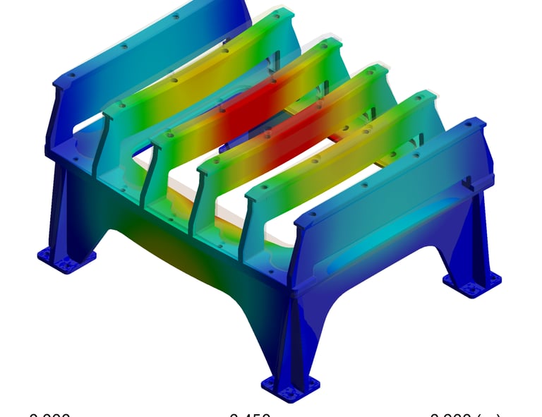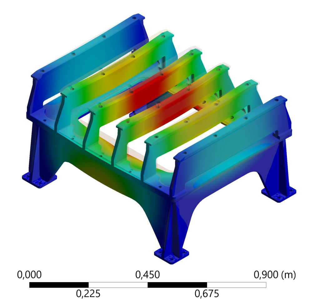 Simulamos el comportamiento estructural, térmico y dinámico de componentes y sistemas, evaluando esfuerzos, deformaciones, temperaturas y vibraciones para optimizar el diseño y asegurar su confiabilidad en aplicaciones industriales.