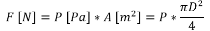 Fuerza de pistón: El cálculo por defecto de los sistemas neumáticos con interacción física, consiste en aplicar la relación de fuerza sobre área es igual a presión. Conociendo la geometría del pistón y la presión del sistema se pueden obtener las fuerzas de avance, retroceso o acción del actuador.